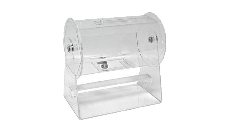 The Small Acrylic Raffle Drum makes a fun promotional tool. The drum is made with 1/8" and 3/16" thick acrylic. It holds up to 2000 raffle tickets for your event.