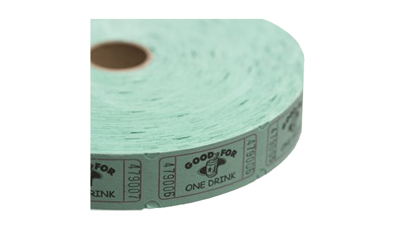 The 2000 Single Stub Drink Ticket roll is perfect for your event. Choose from eight different colors.