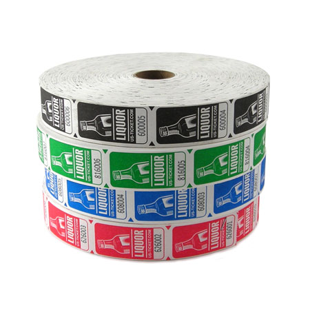 The 2000 Single Stub Liquor Ticket roll is perfect for your event. Choose from four different colors.