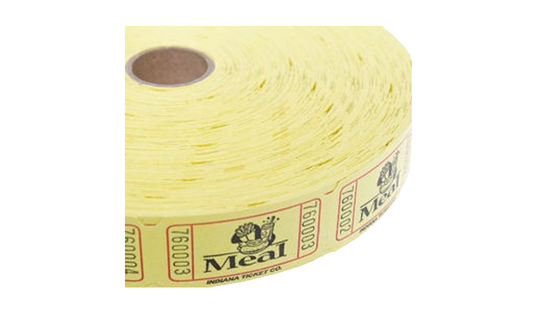 The 2000 Single Stub Meal Ticket roll is perfect for your event. Choose from four different colors.