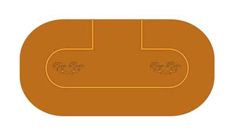 Texas Holdem Poker Table Layout #21 is a casino quality layout made from a polyester blend, and is created using a dye sublimation process. Texas Holdem Poker Table Layout #21 is water resistant and fire retardant, and can be altered to suit your exact needs. This product has a production time of 1 to 2 weeks before delivery.