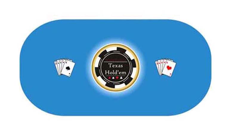 Texas Holdem Poker Table Layout #23 (Texas Hold'em) is a casino quality layout made from a polyester blend, and is created using a dye sublimation process. Texas Holdem Poker Table Layout #23 is water resistant and fire retardant, and can be altered to suit your exact needs. This product has a production time of 1 to 2 weeks before delivery.
