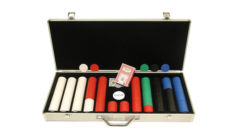 - Holds 650 poker chips, two decks and dealer buttons