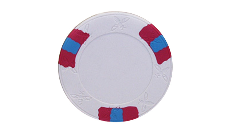 Enjoy the authentic feel of the White Lucky Bee Edge Spot Poker Chip. These chips weigh 12 grams and are 39 mm in diameter. These chips feature 8 bees stamped on the outside of the chip. A unique process gives the chips the soft feel of a clay surface. The recessed center allows for the application of custom 1" labels.