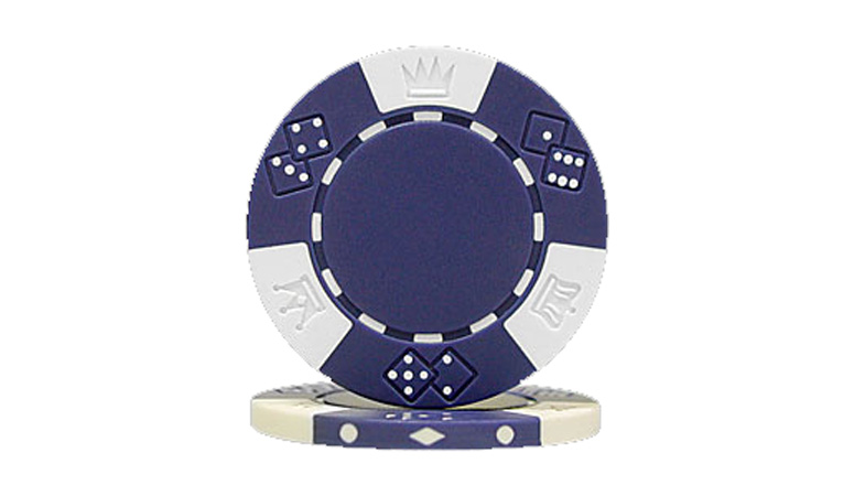 Ante up with the Blue Lucky Crown Poker Chip. These chips weigh 11.5 grams. They feature a crown and dice pattern and are made from composite resin. Customize your chips with hotstamping for an additional charge.