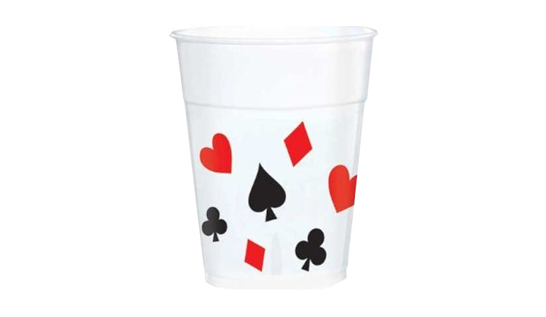 The Plastic Card Suit Cups are a perfect addition to your casino-themed party. The glasses are made out of clear plastic and hold 14 ounces of liquid. Comes in eight sets of 8.