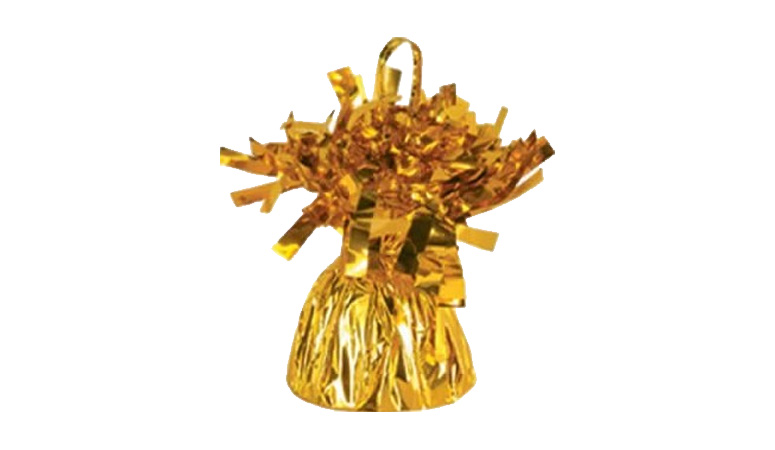 Keep your balloon weighted with the Wrapped Gold Balloon Weight. They are sold in sets of 35. This holder is covered with a gold metallic material. The holder measures 4.45 inches stall and 2.5 inches wide.