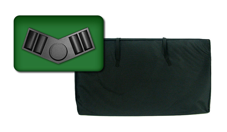 The Deluxe Folding Table Top is a solid, durable and convenient poker table top. It also comes with a custom fit carrying case, removable trays for poker chips and drink holders. The table's felt is marked with a yellow border to signify the "live area" where bets and community cards are played. The table top is lightweight yet sturdy, and easy to transport. Folding the table reduces the size to 20" x 36" for easy storage in a closet or under a bed.